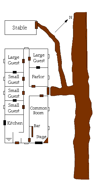 The guest's mounts and are housed in the stables; a separate low building just to the east of the inn.